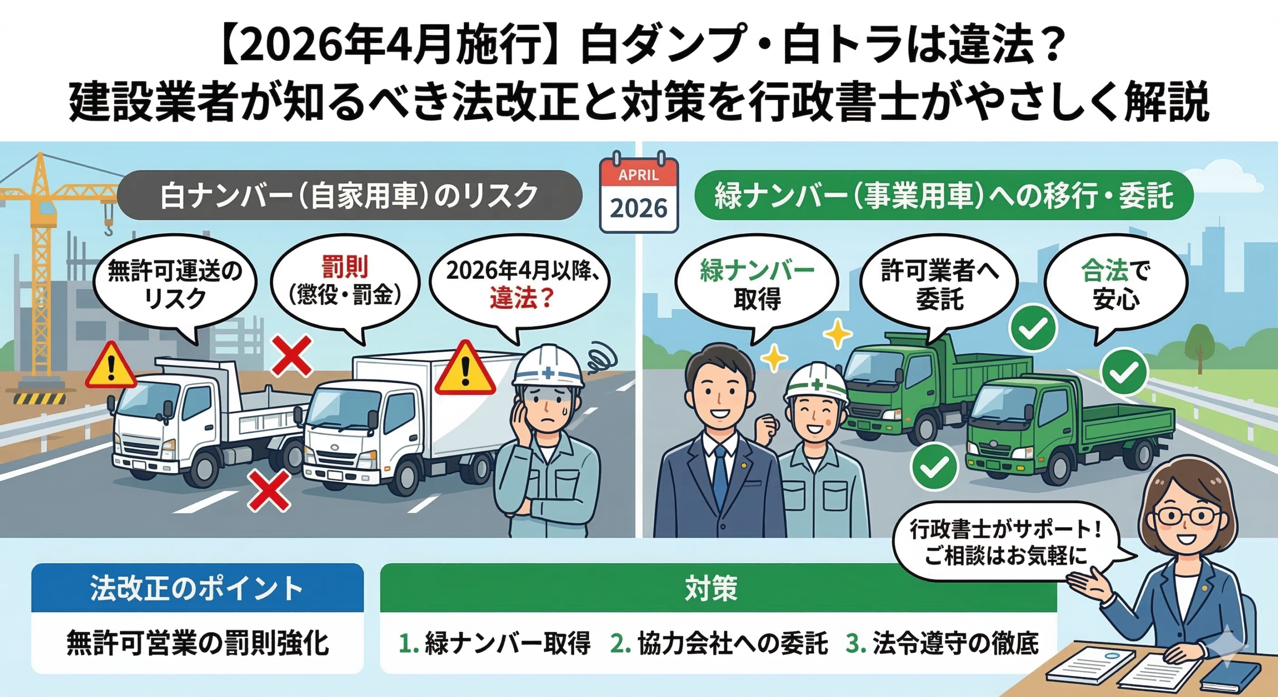 2026年4月の法改正で、建設業界の「白ダンプ問題」は見て見ぬふりができない段階に入りました。