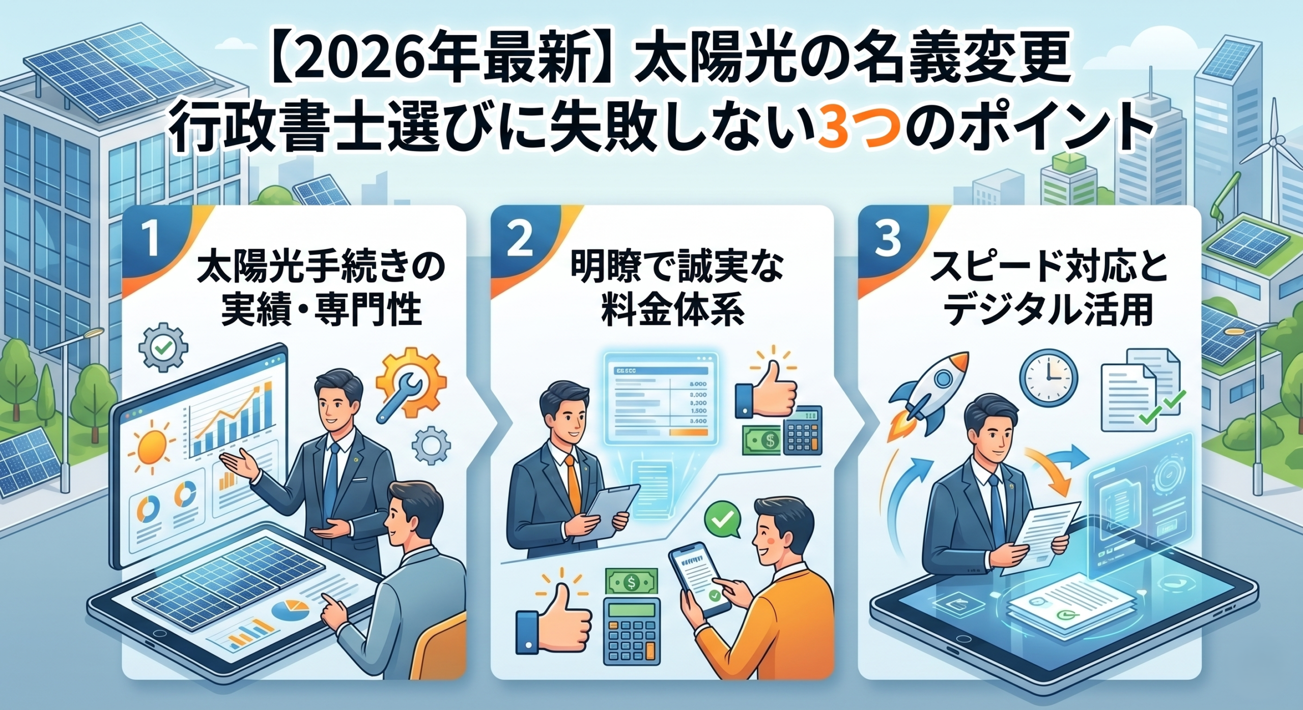 太陽光発電(FIT)の名義変更は、2026年の法規制強化により手続きが複雑化し、ご自身で行うには非常に高いハードルがあります。「面倒な手続きはプロ(行政書士)に丸投げしよう!」とお考えの皆様、そのご判断は大正解です。